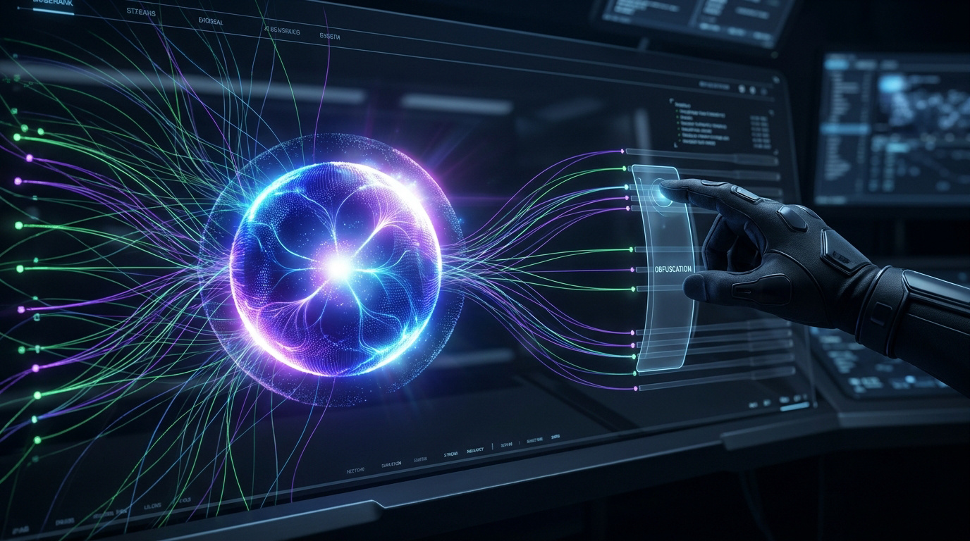 Contrôlez votre PageRank grâce à l'obfuscation de liens SEO. Cette interface futuriste symbolise la maîtrise des flux de données et des stratégies SEO.